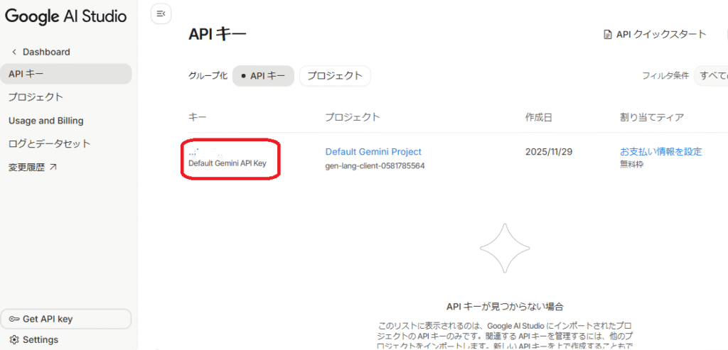 | GEMINI_KEY | 手順1で取得したAPIキー |
