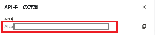 AIza...から始まる文字列)をコピーしてメモ帳に保存します。
