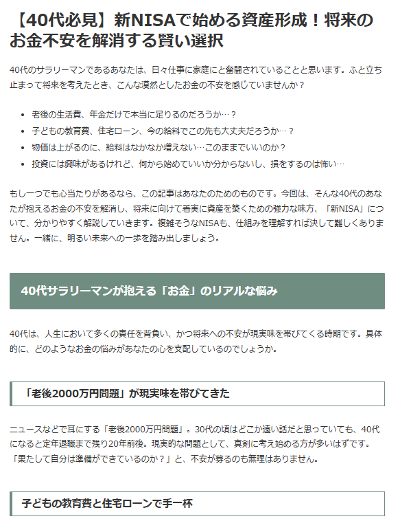 1. 読者は40代のサラリーマンです。共感できる悩みを提示してください。
