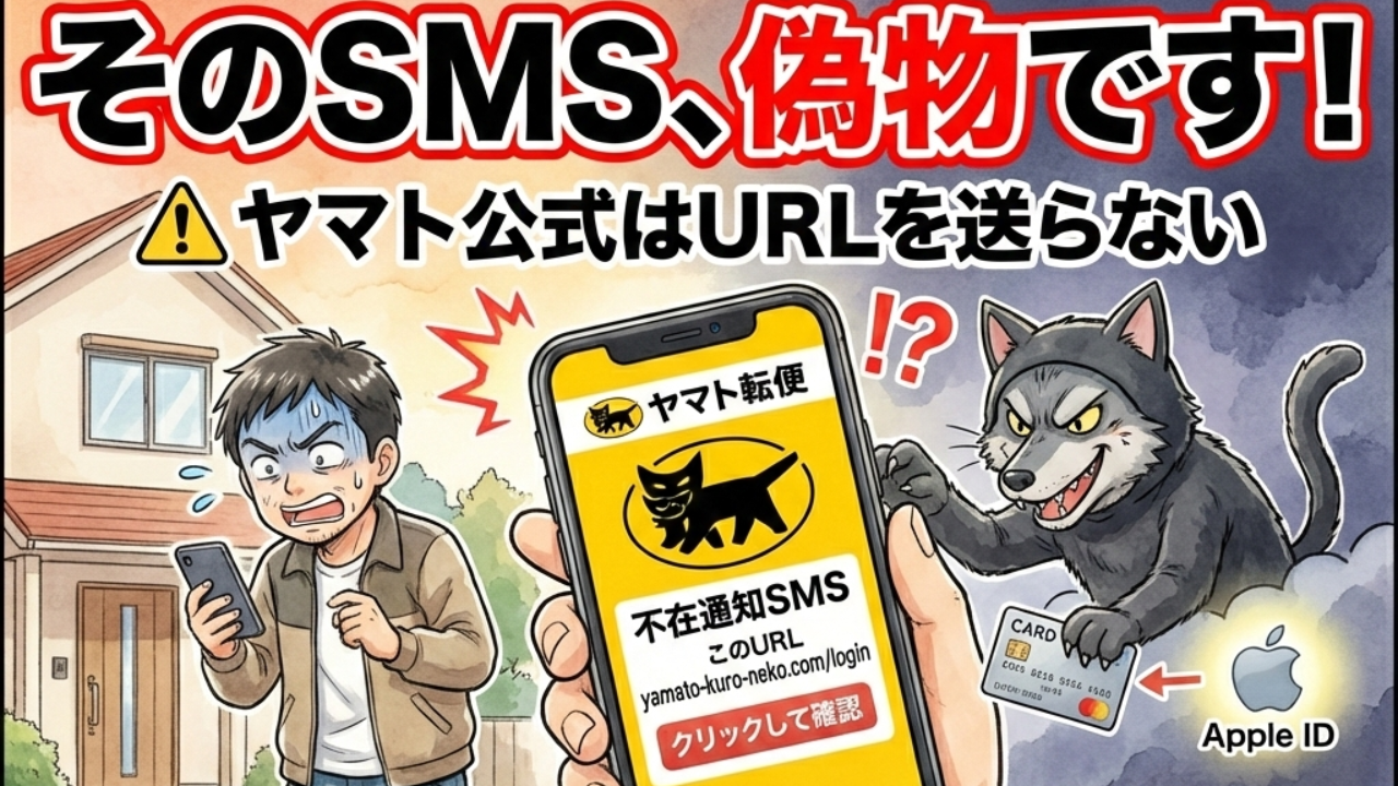 「お荷物をお届けにあがりました」。師走の荷物ラッシュを狙うヤマト運輸の偽SMS。公式が警告する「絶対にやってはいけないこと」と、2025年夏から急増している「Apple ID窃取」の最新手口を解説。