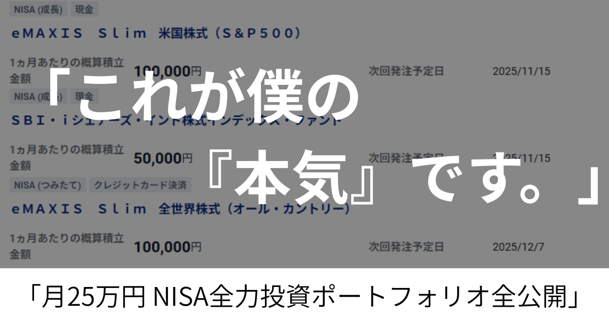 見ての通り、僕は現在、毎月25万円を新NISAの枠で投資信託に回しています。 (※ワンルームの赤字を考えれば、これだけ入金できる「守る力」が身についたのがデカい…!)