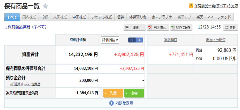 • インデックス投信や楽天株が積み上げた、輝かしい利益です。