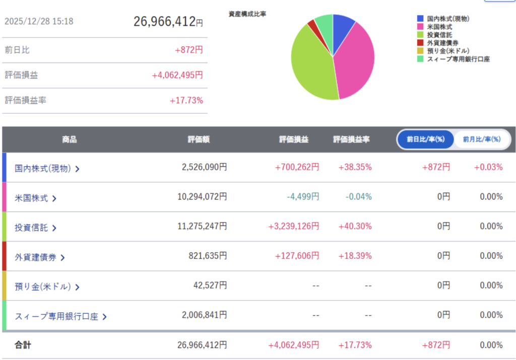 • 合計評価損益: +4,062,495円(+17.73%)
