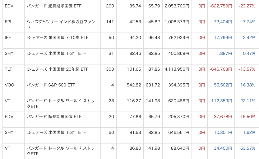 • 米国債ETF(EDV・TLT): 合計 約 −120万円のマイナス